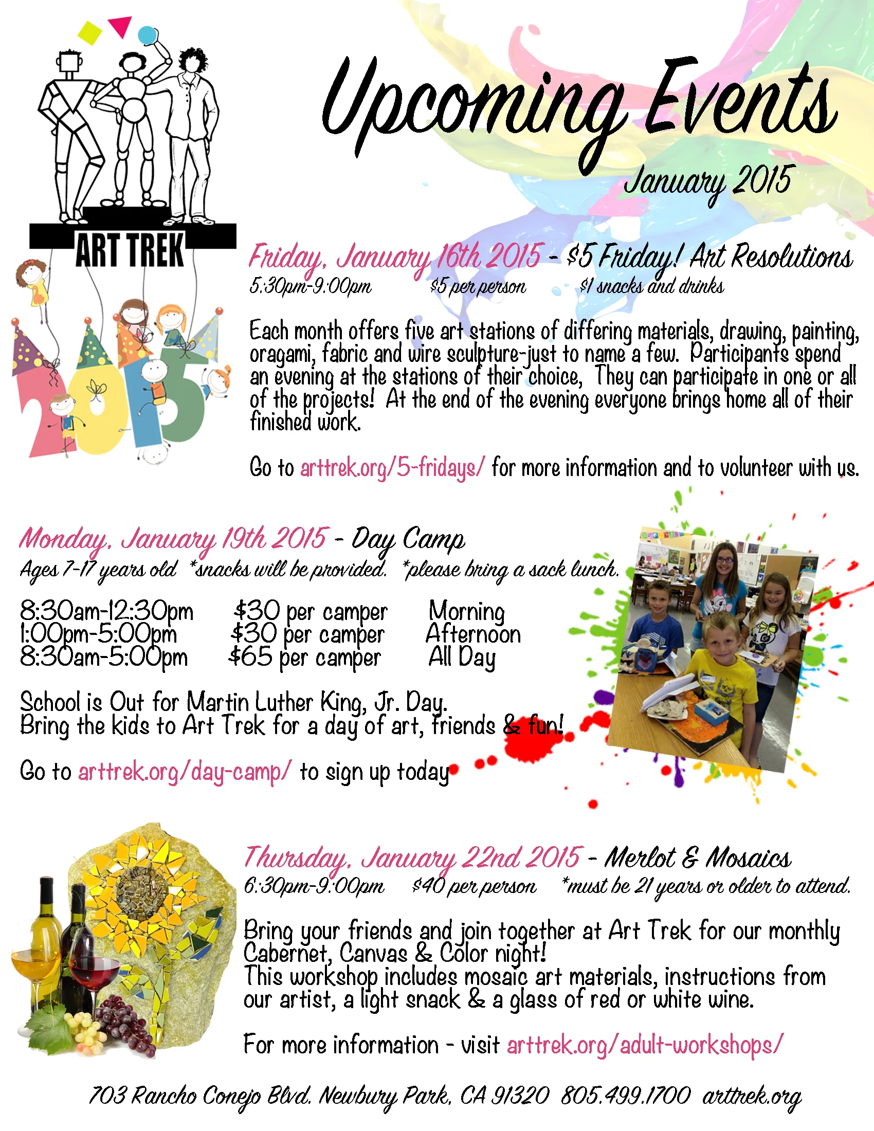 Posted on January 8, 2015 by Media Outreach Coordinator and tagged flyer 2015 events upcoming events $5 Friday Day Camp Cabernet Canvas & Color.