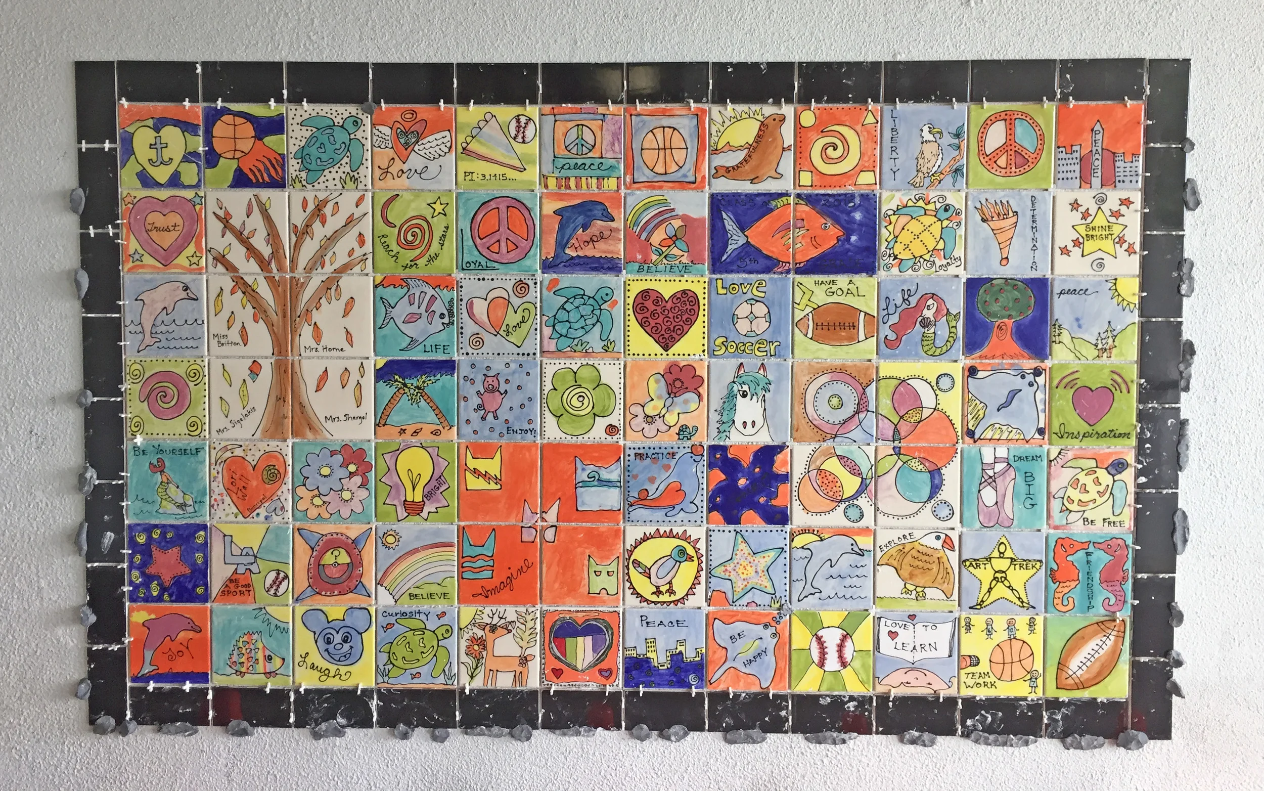 The Ladera Elementary 2015 - 5th Grade Class Character Wall is up and ready to be grouted!