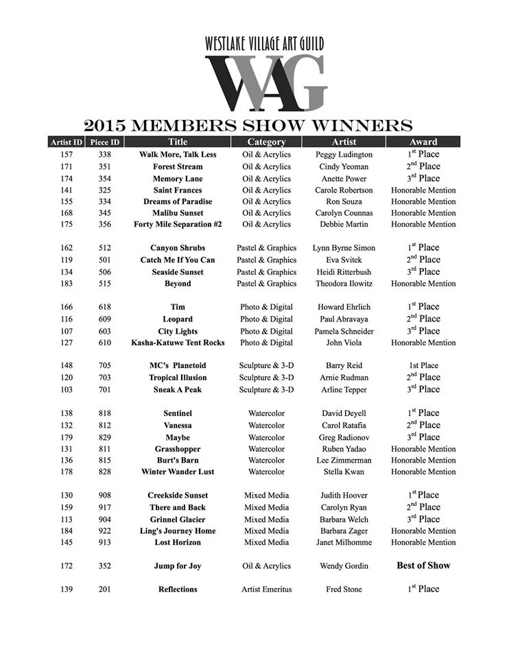 Westlake Village Guild Members Show Winners!