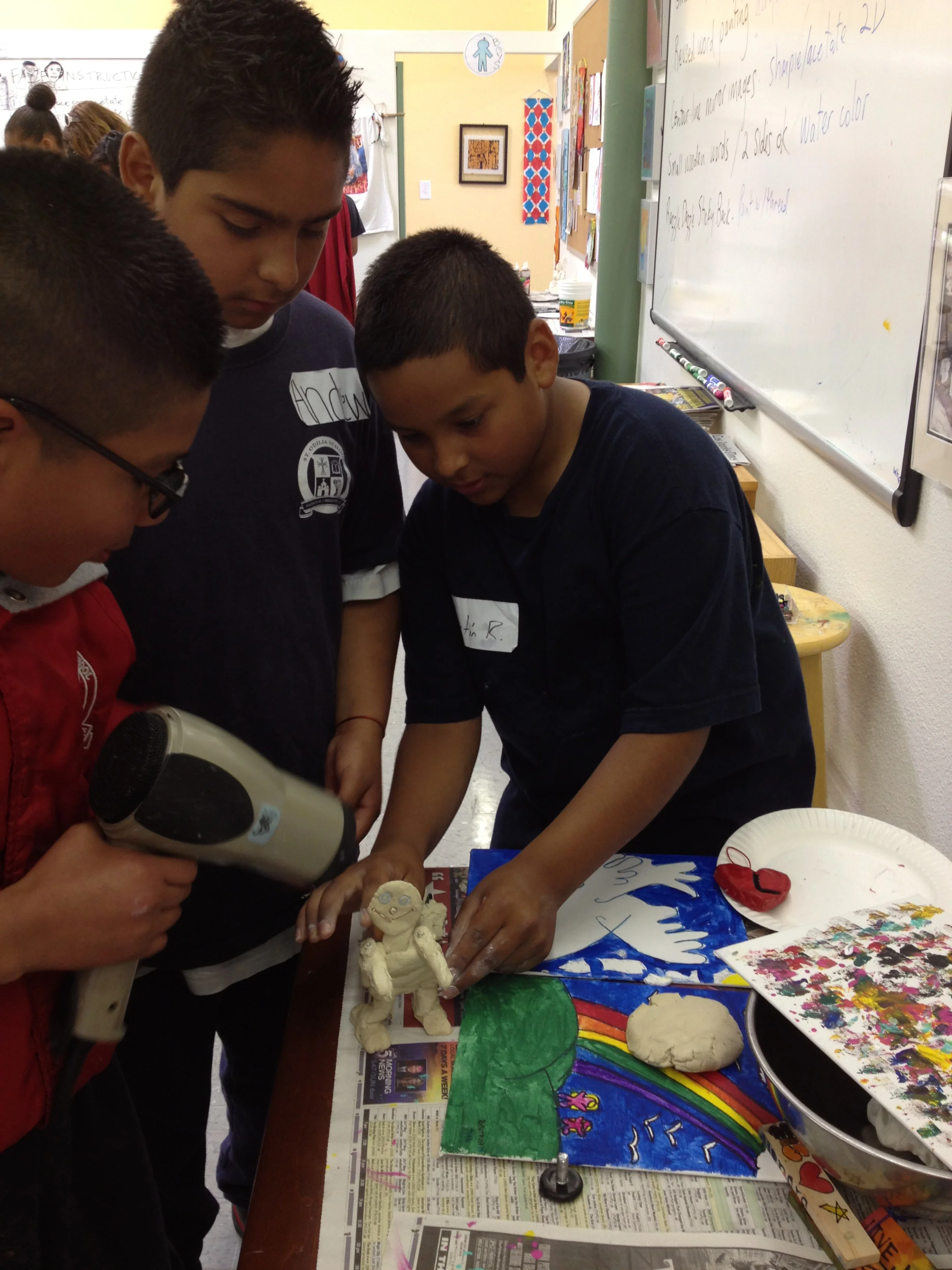 Projects are planned well in advance in concert with teachers. The availability of materials allows for spontaneous growth and change. We draw, paint, sculpt, build, and write inside the Art Trek studio.