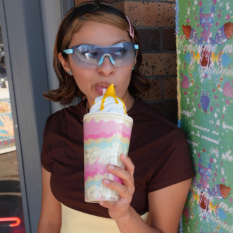 Lexi draws inspiration from the cartoons and animations that she enjoyed growing up as a foundation for her own sugary aesthetic. She uses a mixture of lightweight spackling, decoden cream glue, model magic clay, and acrylic paint to create sculptures and accessories modeled after sweets and confectionaries.